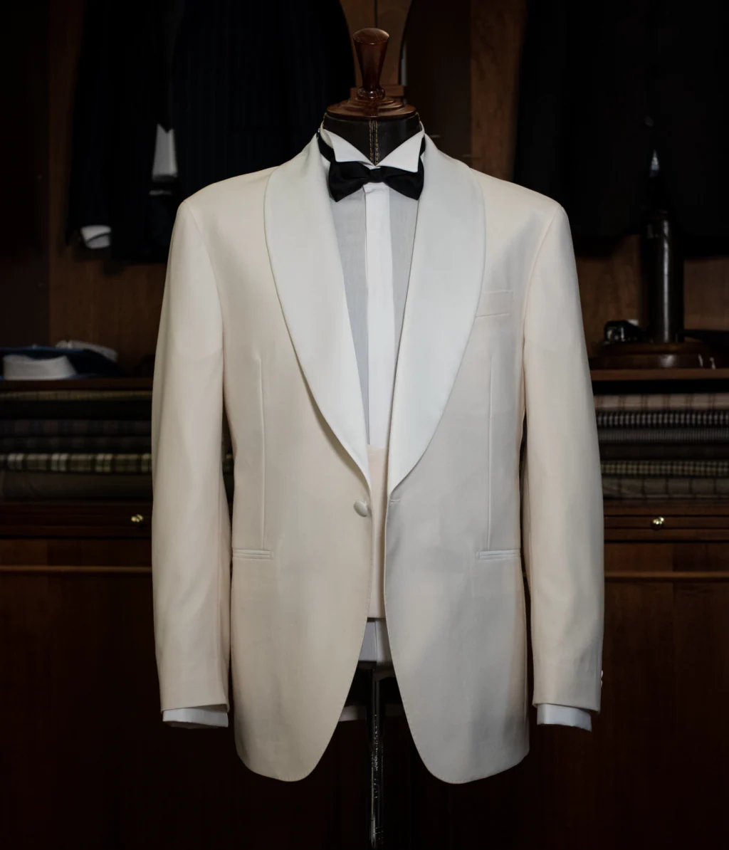 In questa versione, il modello Donatello eleva il concetto di black tie estivo. L’armonia tra il colore chiaro del tessuto e il bagliore della fodera oro trasforma lo smoking in un oggetto di puro design, dove ogni elemento è studiato per esaltare la figura con un lusso discreto ma inconfondibile.