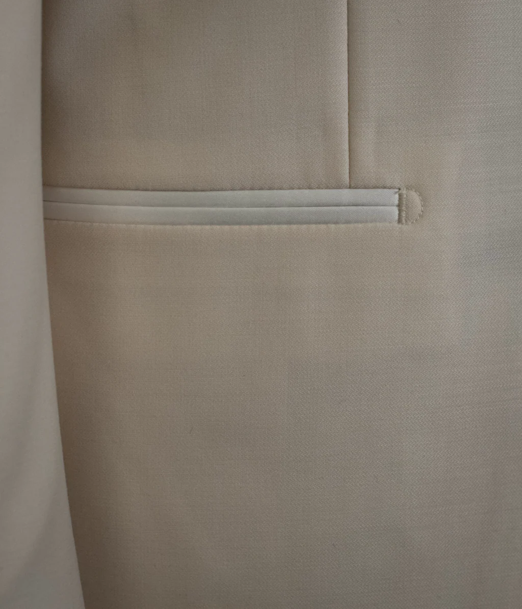 - Tasche: A filetto, la scelta più rigorosa e lineare per mantenere la giacca perfettamente piatta.
