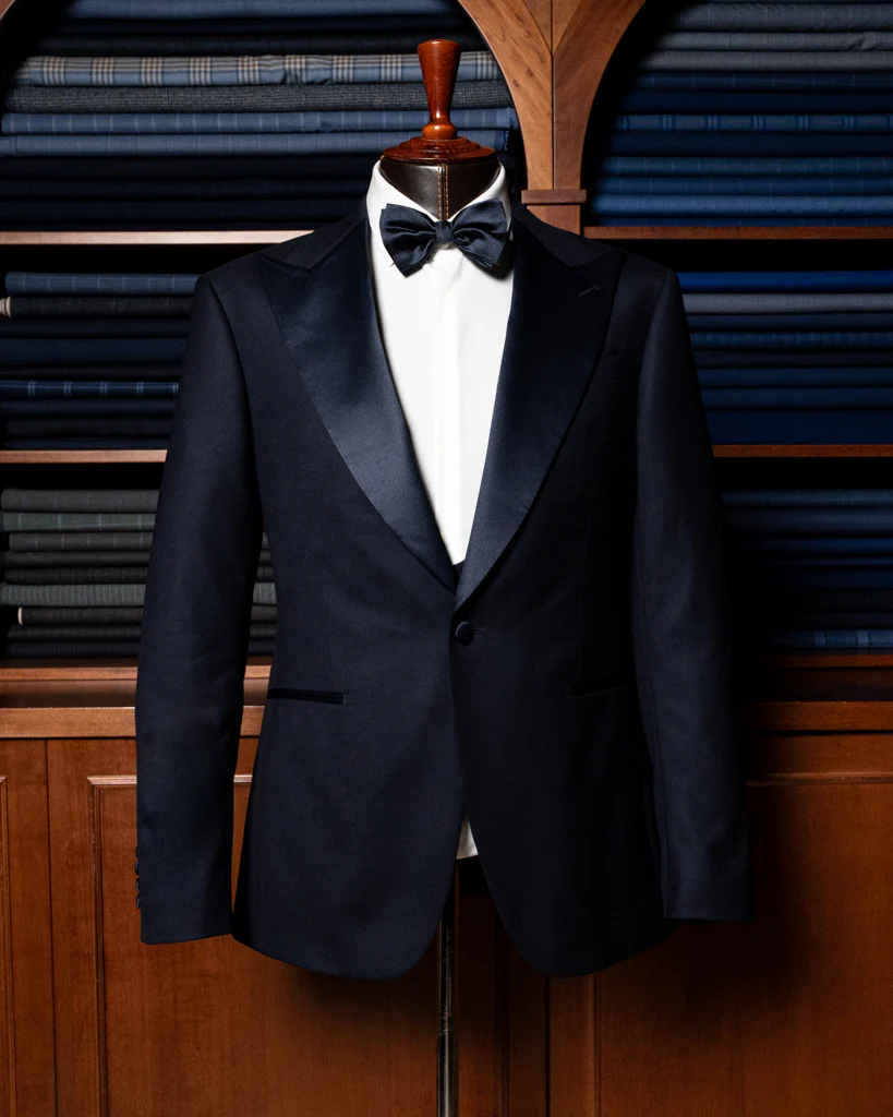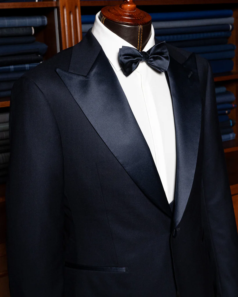 - Spacchi: Schiena senza spacchi, come impone la tradizione più pura dello smoking per una silhouette statuaria.