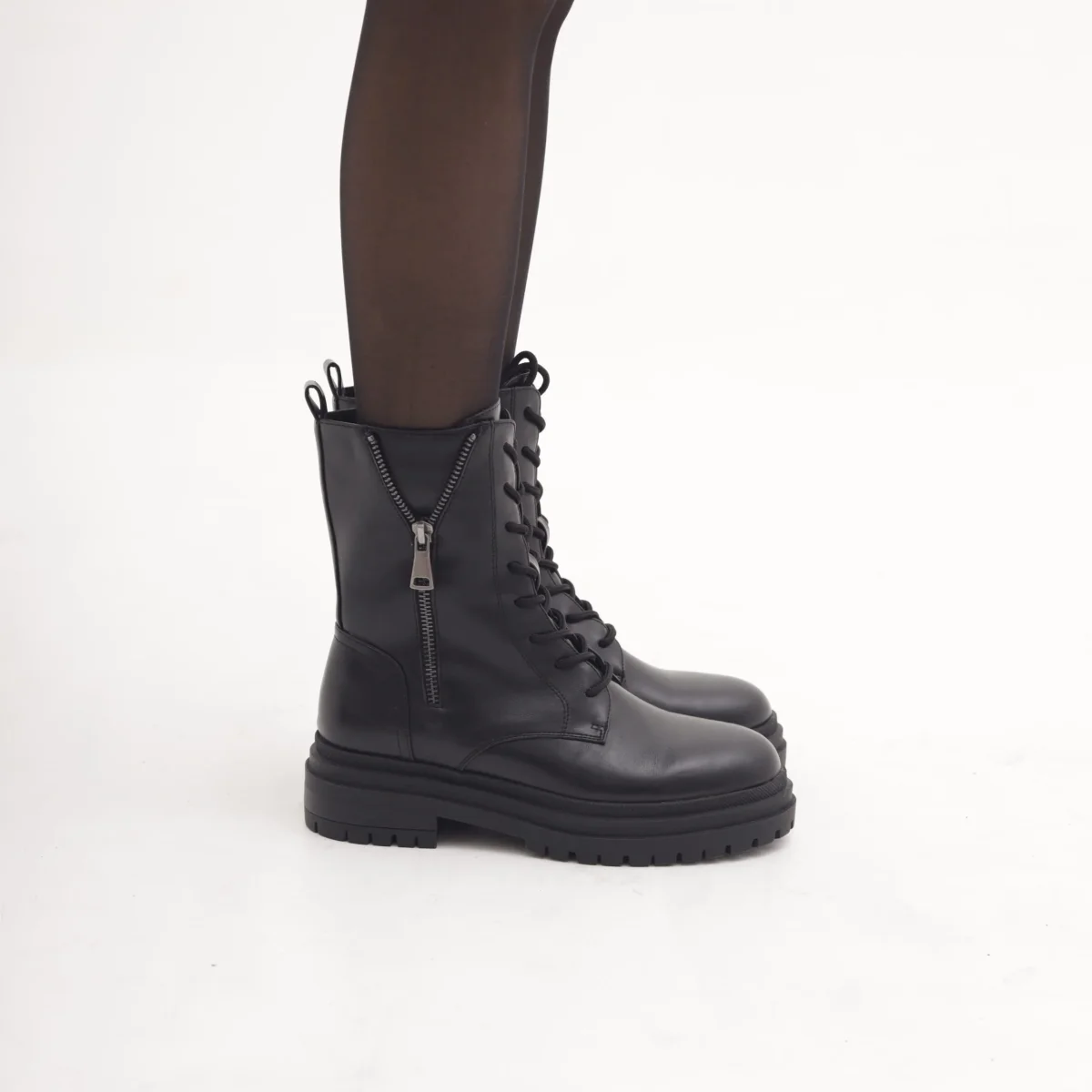 Stivaletto anfibio con lacci e zip