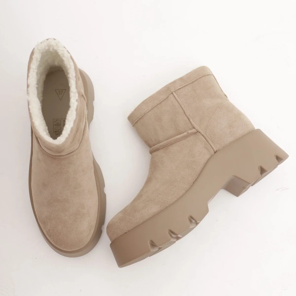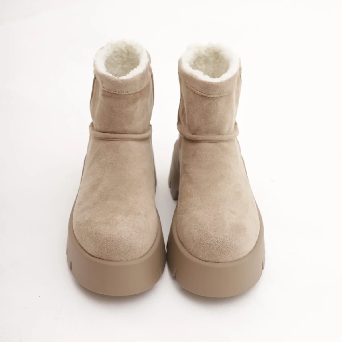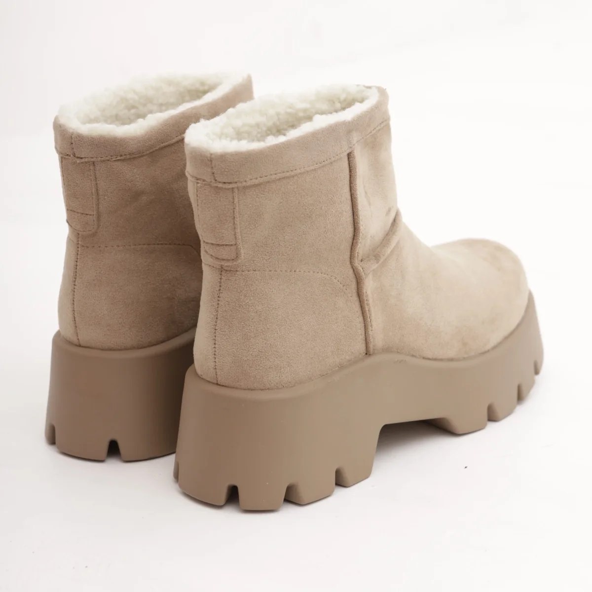 Modello Stivaletto realizzato in simil-camoscio Tortora. Disponibile anche in Nero.