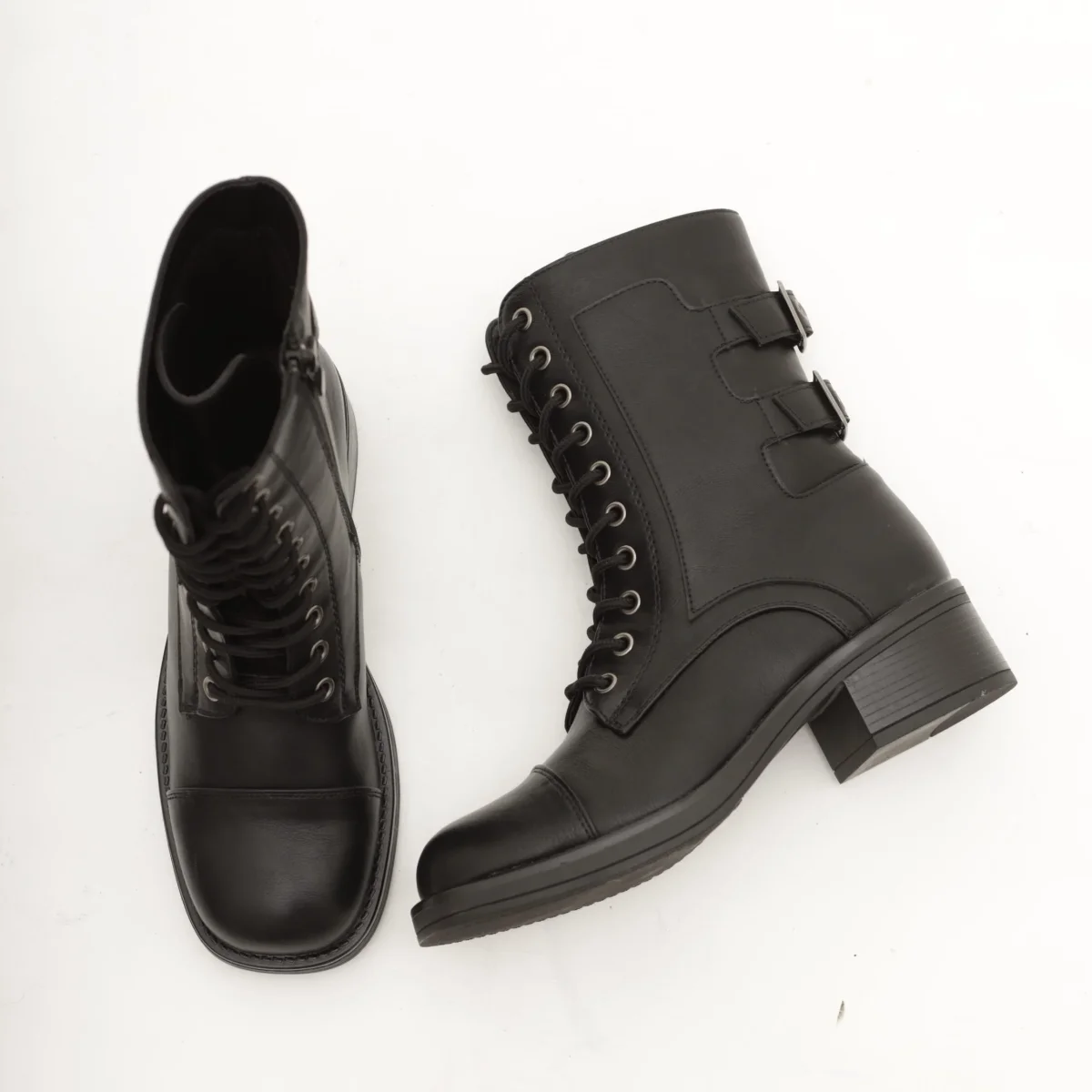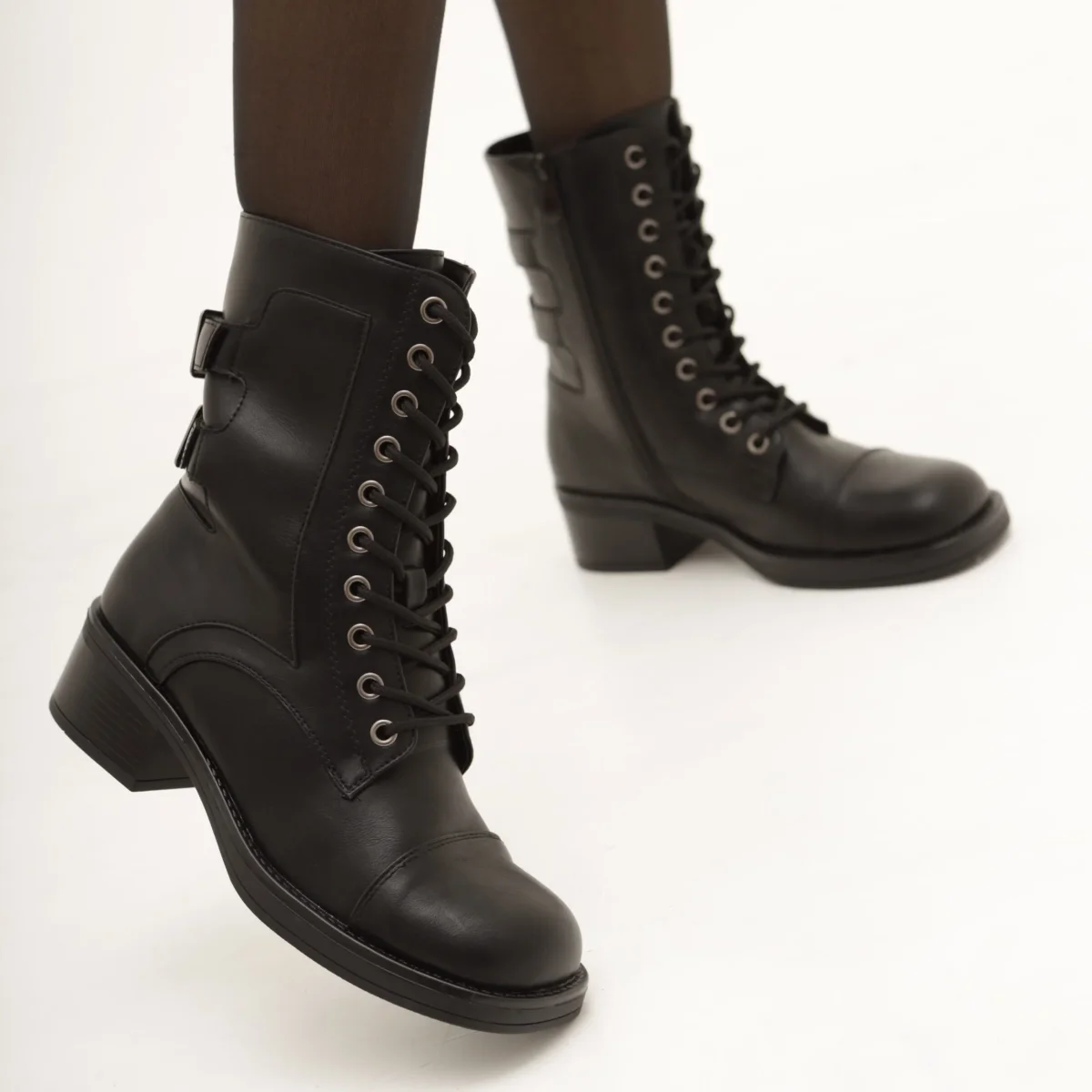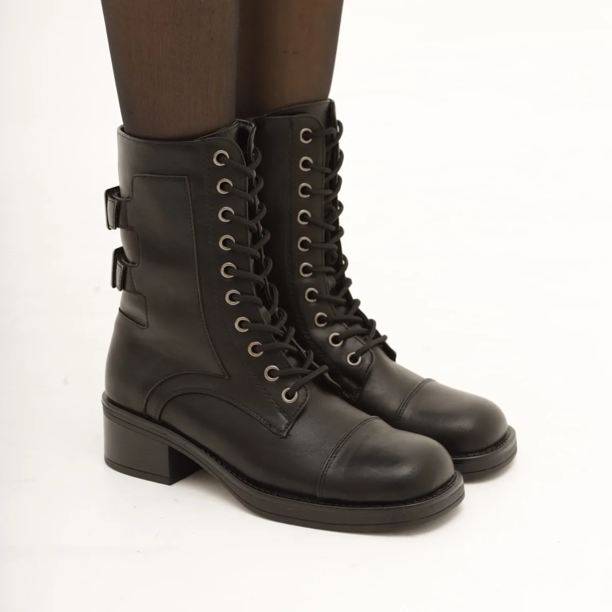 Stivaletti anfibi con fibbie e lacci
