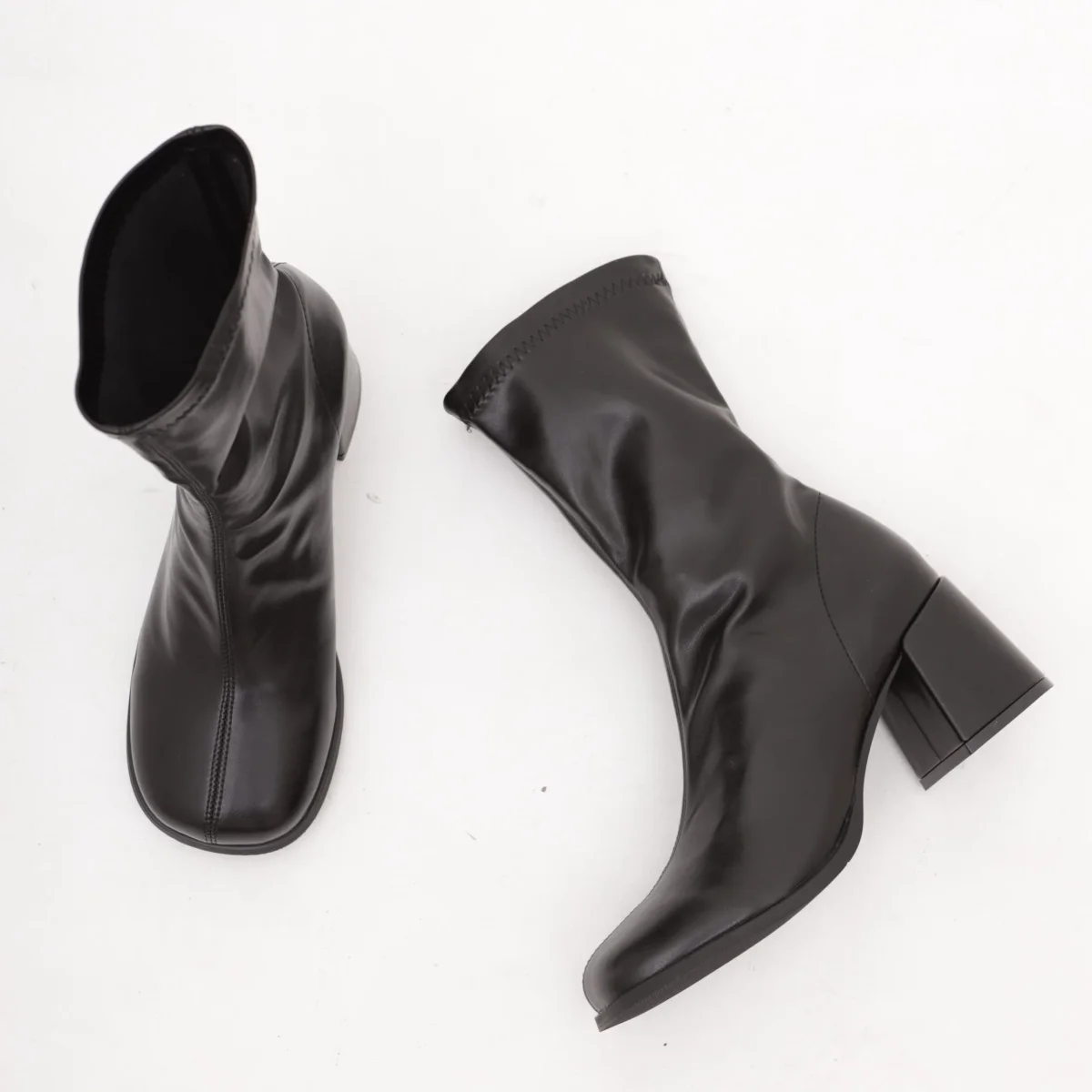 Modello Stivaletto realizzato in eco-pelle Nero. Modello molto aderente.
