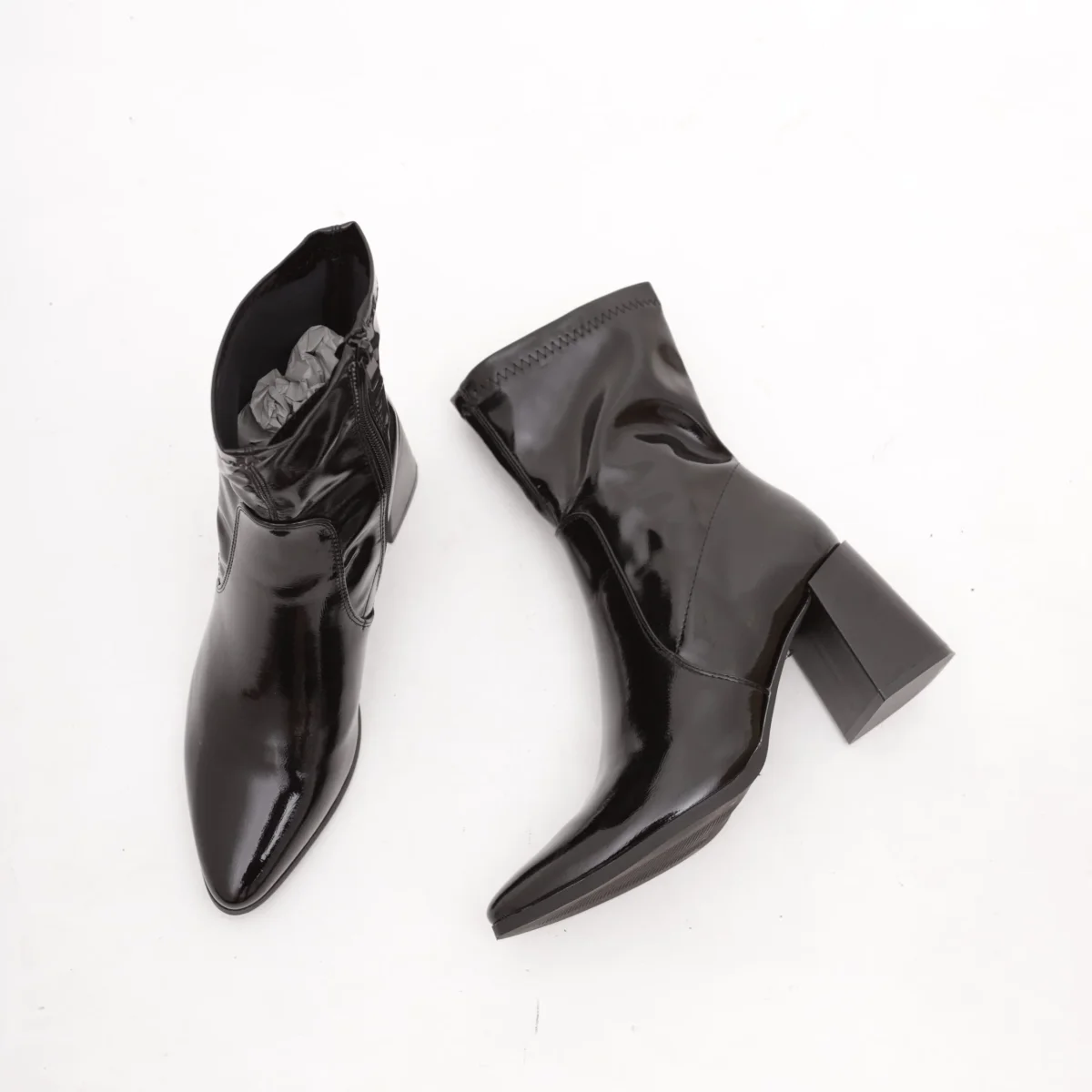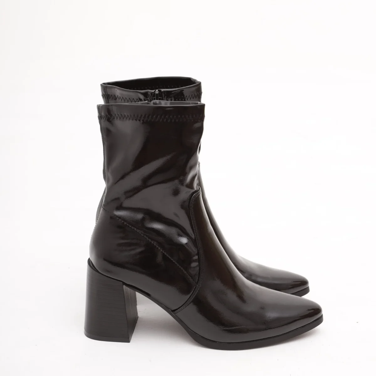Stivaletto realizzato in vernice Nero. Disponibile anche in Bordeaux.