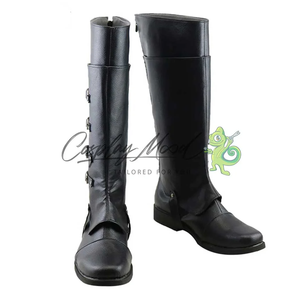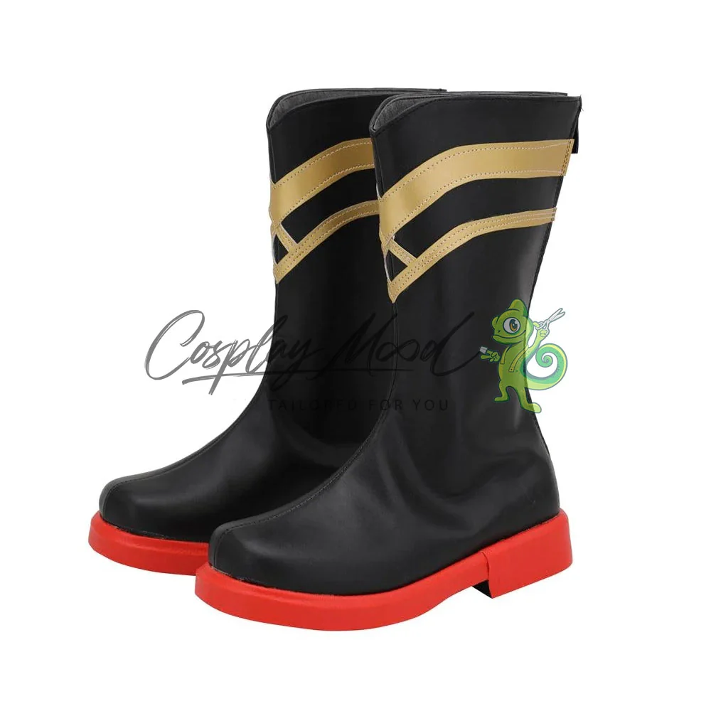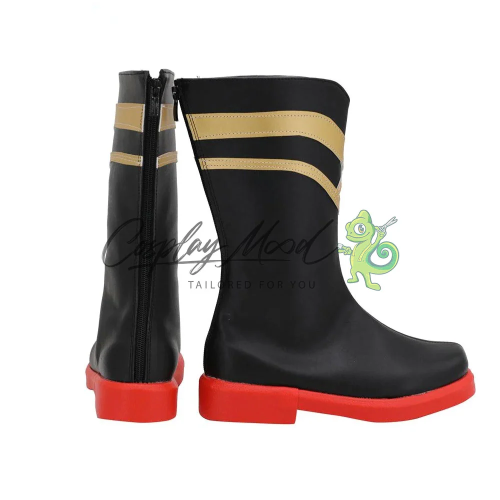 Gli stivali sono lavorati in pelle PU ed impreziositi con dettagli tipici del personaggio in questione. Questo tipo di calzature sono resistenti ad urti e strappi ed appariranno come da immagine: un paio di stivali neri con suola e tacco rossi e decorazioni dorate nella parte alta.