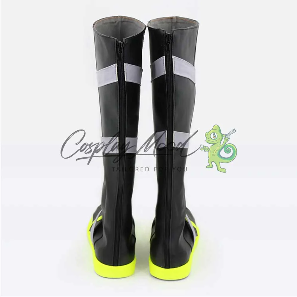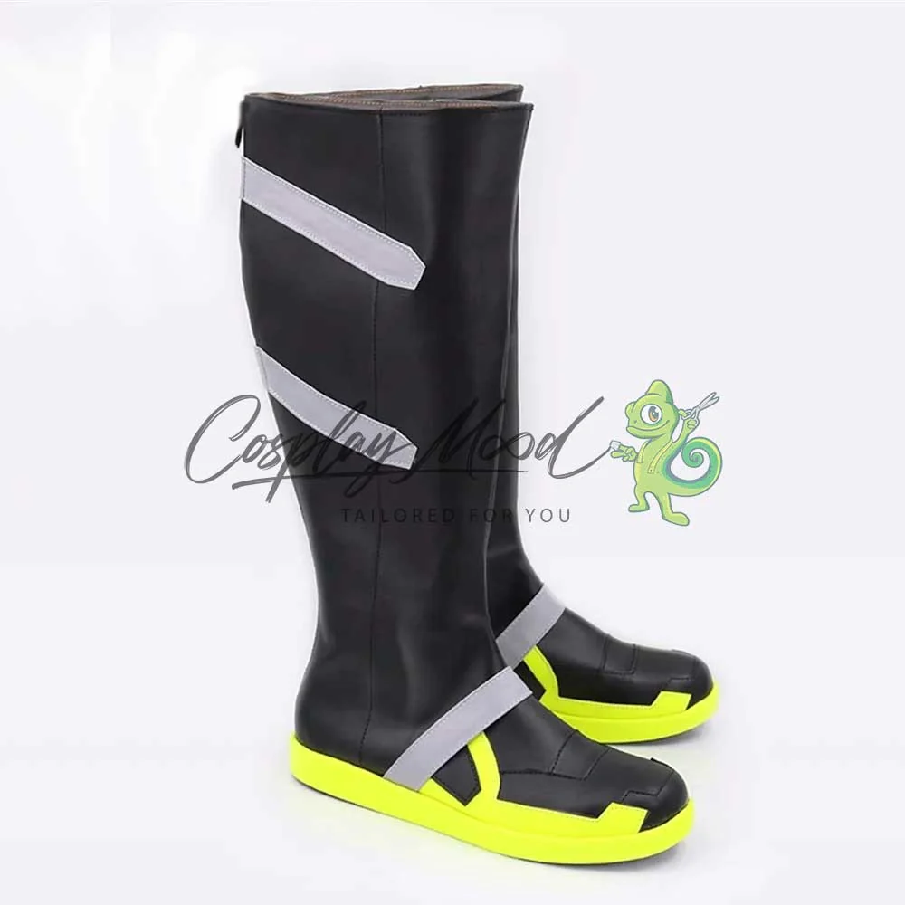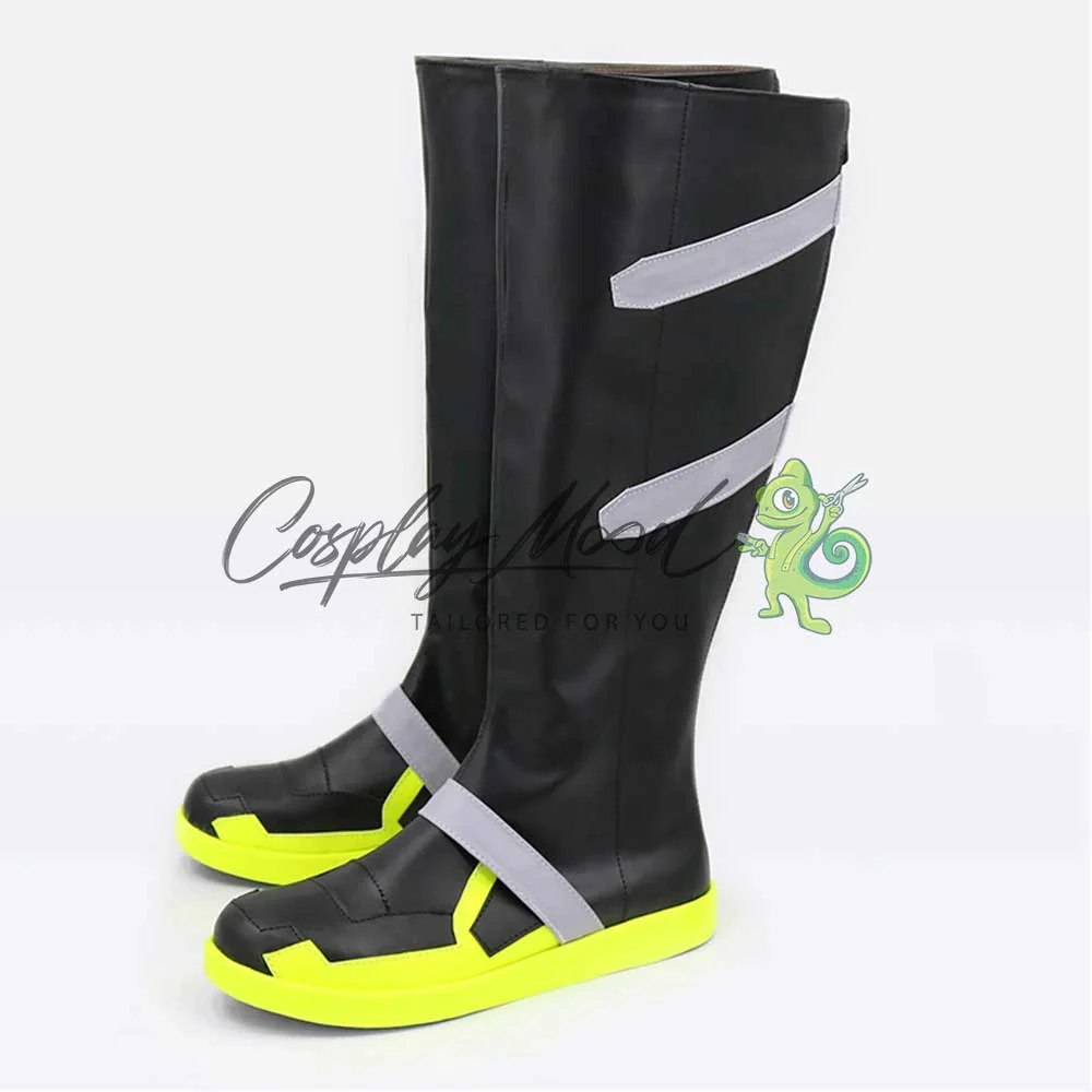 Questi stivali sono realizzati in pelle PU e lavorati con dettagli tipici del personaggio in questione. Questo tipo di calzature risultano resistenti ad urti e strappi ed appariranno come da immagine: un paio di stivali con base nera, suola gialla e finiture dello stesso colore, decorazioni grigie ai lati del piede e nella parte alta degli stivali.