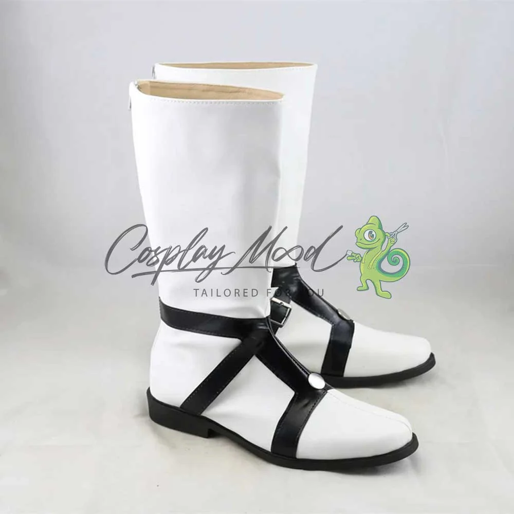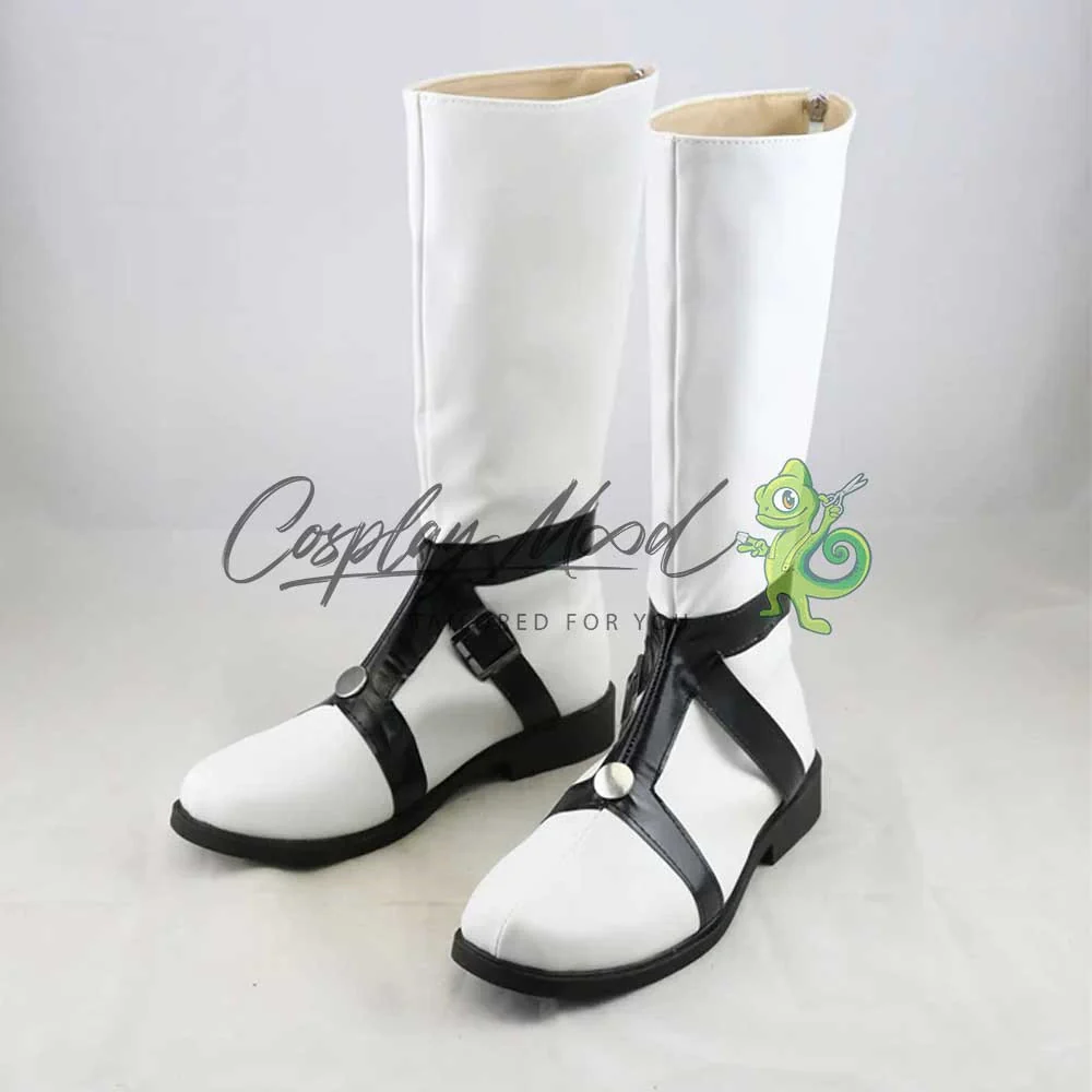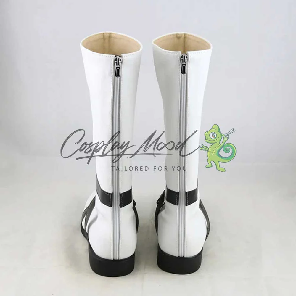Gli stivali sono realizzati in pelle PU e lavorati con dettagli tipici del personaggio in questione. Questo tipo di calzature sono resistenti ad urti e strappi ed appariranno come da immagine: un paio di stivali bianchi bordati in nero su suola e tacco e dotati di una imbracatura sempre di colore nero contornata da un bottoncino argentato al centro. Le nostre calzature cosplay sono fatte su ordinazione, quando il laboratorio finisce di realizzarle verranno spedite immediatamente. Potrebbe accadere che alcuni tipi di scarpe o stivali all’inizio possano emanare un forte odore che per alcune persone potrebbe risultare alquanto sgradevole. Questa cosa si risolverà facilmente mettendo le scarpe o gli stivali in un luogo areato per una notte o al massimo per qualche giorno.