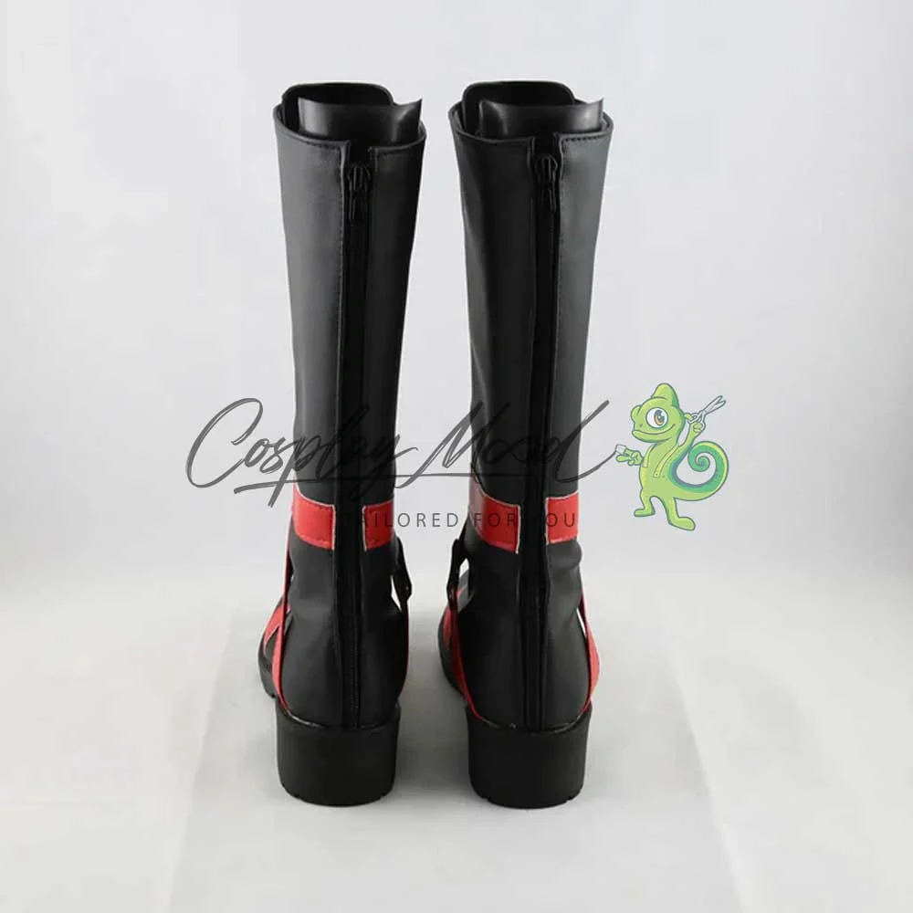 Gli stivali sono realizzati in pelle PU e lavorati con dettagli tipici del personaggio in questione. Questo tipo di calzature sono resistenti ad urti e strappi ed appariranno come da immagine: un paio di stivali neri dotati di un’imbracatura di colore rosso contornata da un bottoncino argentato al centro. Le nostre calzature cosplay sono fatte su ordinazione, quando il laboratorio finisce di realizzarle verranno spedite immediatamente. Potrebbe accadere che alcuni tipi di scarpe o stivali all’inizio possano emanare un forte odore che per alcune persone potrebbe risultare alquanto sgradevole. Questa cosa si risolverà facilmente mettendo le scarpe o gli stivali in un luogo areato per una notte o al massimo per qualche giorno.