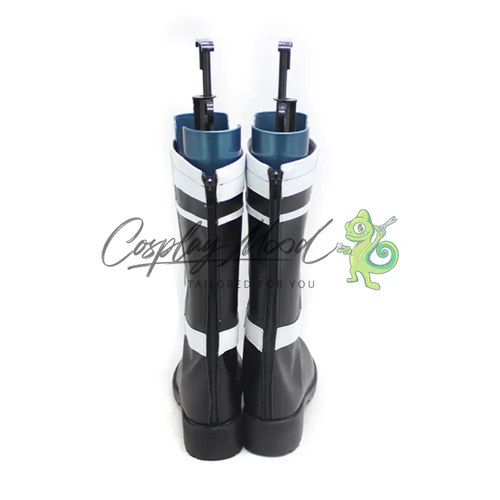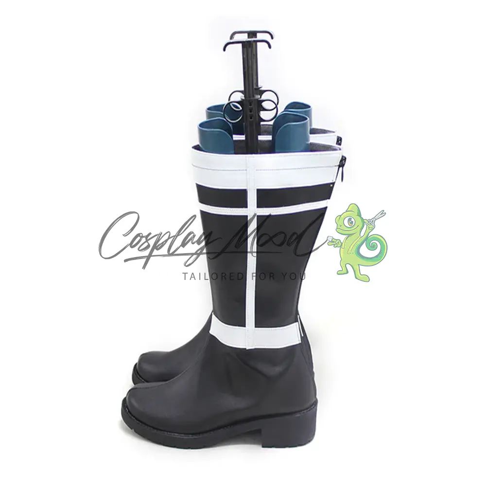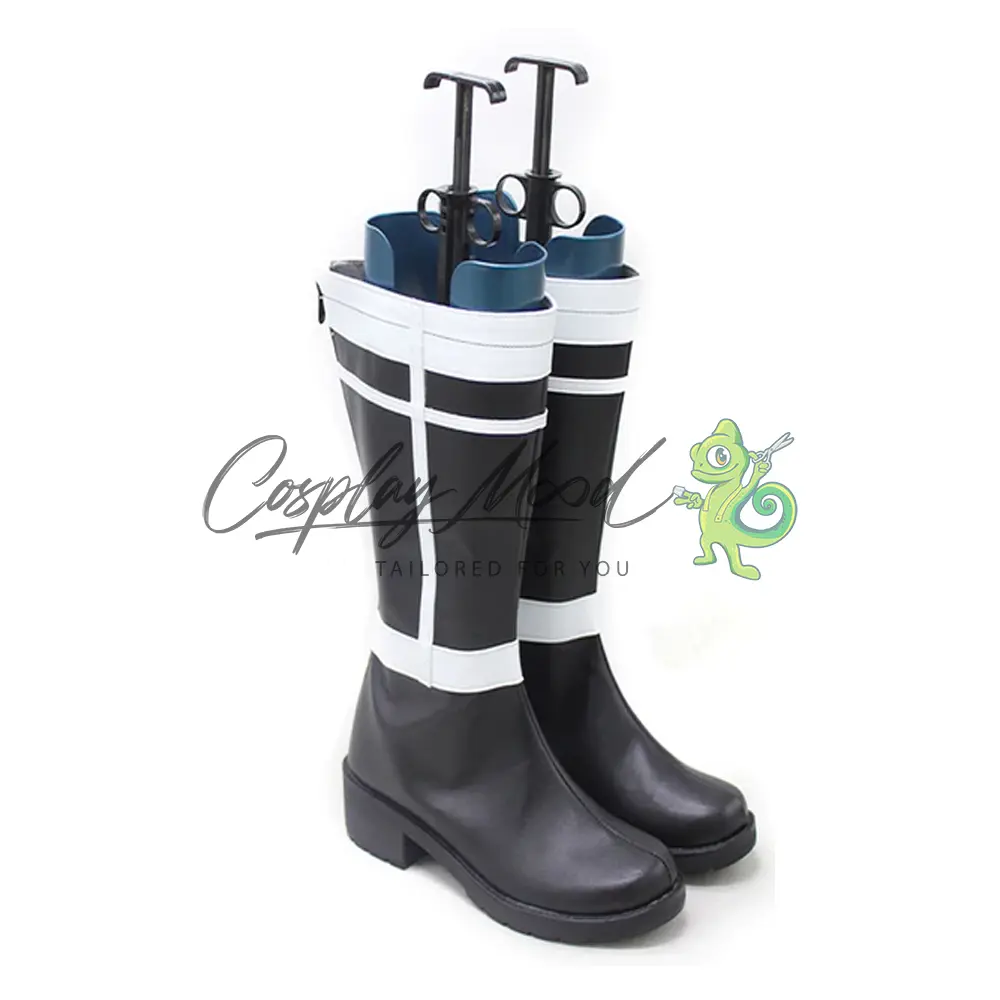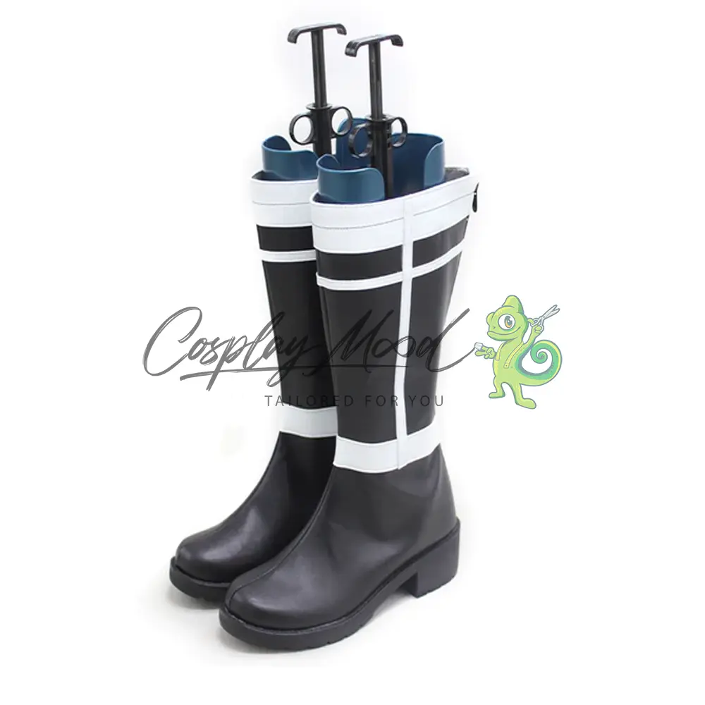 Questi stivali sono realizzati in pelle PU e lavorati con dettagli tipici del personaggio in questione. Questo tipo di calzature sono resistenti ad urti e strappi ed appariranno come da immagine: un paio di stivali lunghi neri con bande bianche nel mezzo e nella parte alta, completano decorazioni a croce nella zona del corpo degli stivali sia nell’interno che nell’esterno.