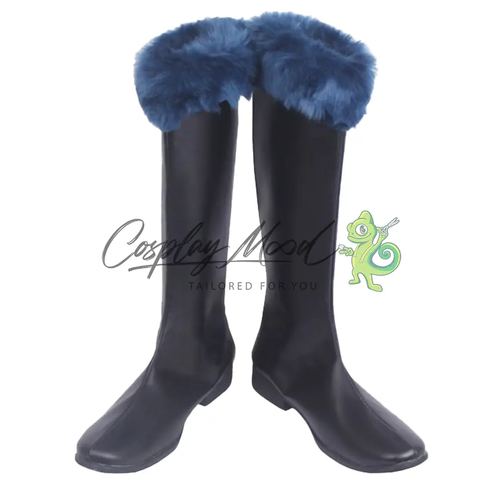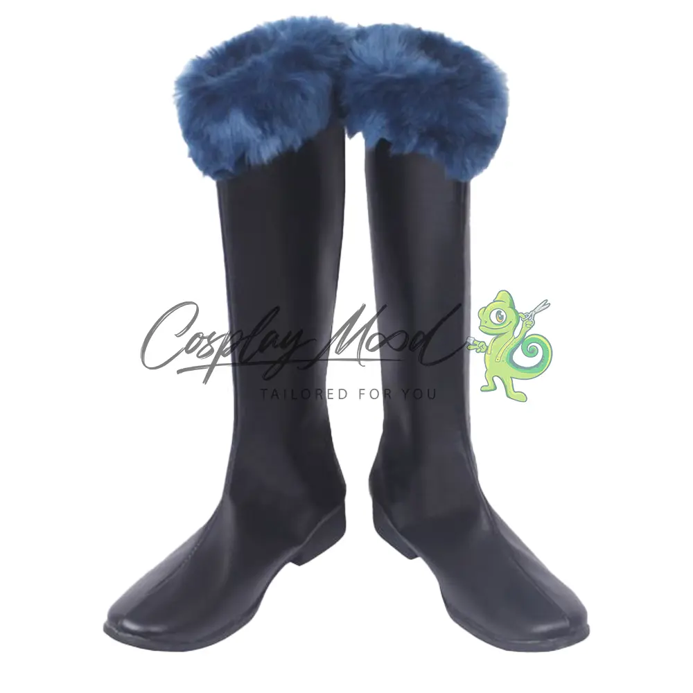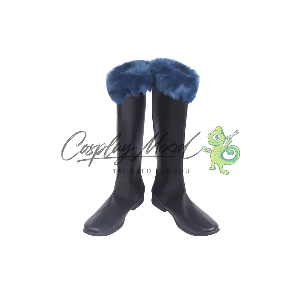 Le scarpe sono realizzate in pelle PU e lavorate con dettagli tipici del personaggio in questione. Questo tipo di calzature sono resistenti ad urti e strappi ed appariranno come da immagine: un paio di stivali lunghi neri con il peloncino blu posto in alto. Gli stivali cosplay sono fatti su ordinazione, quando il laboratorio finisce di realizzarli verranno spediti immediatamente. Potrebbe accadere che alcuni tipi di scarpe o stivali all’inizio possano avere un forte odore che per alcune persone potrebbe risultare sgradevole. Questa cosa si risolverà facilmente mettendo le scarpe o gli stivali in un luogo areato per qualche giorno.