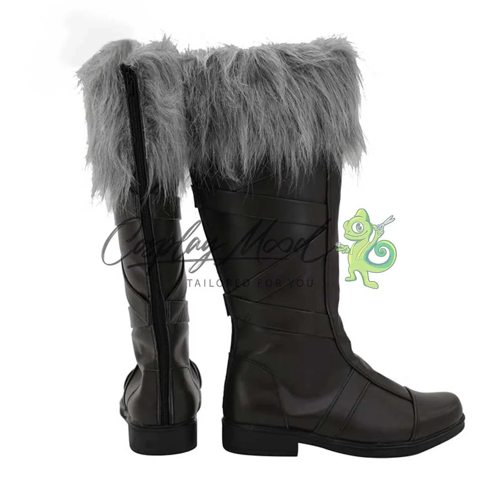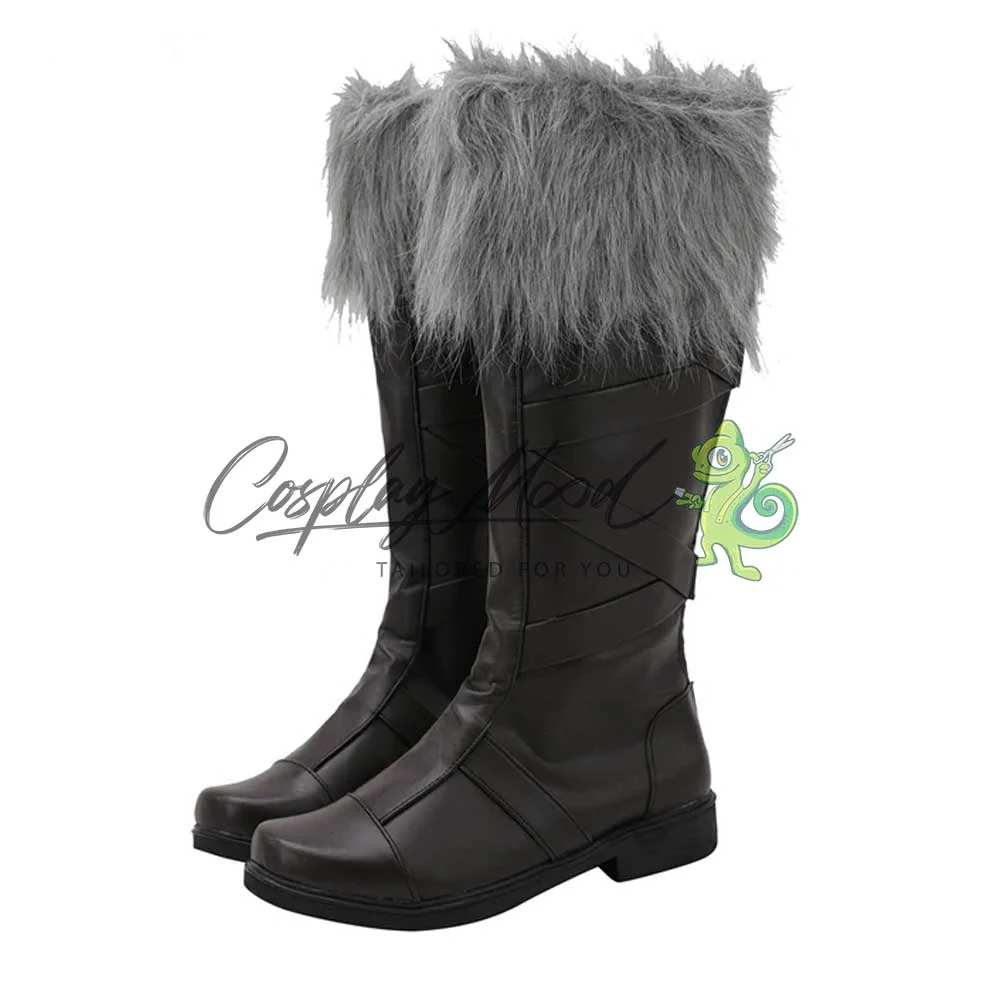 Gli stivali sono realizzati in pelle PU, un materiale bello esteticamente e molto resistente e come puoi vedere dalle immagini questi si compongono di: una base marrone scuro con intrecci in rilievo e del peloncino grigio nella parte superiore. Davvero un paio di stivali cosplay particolare ed inusuale rispetto agli stivali che siamo abituati ad utilizzare tutti i giorni.