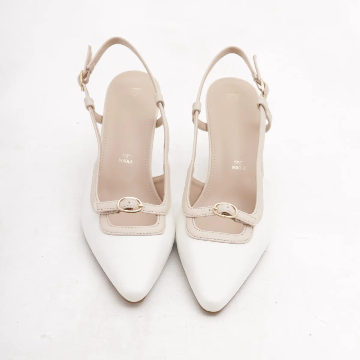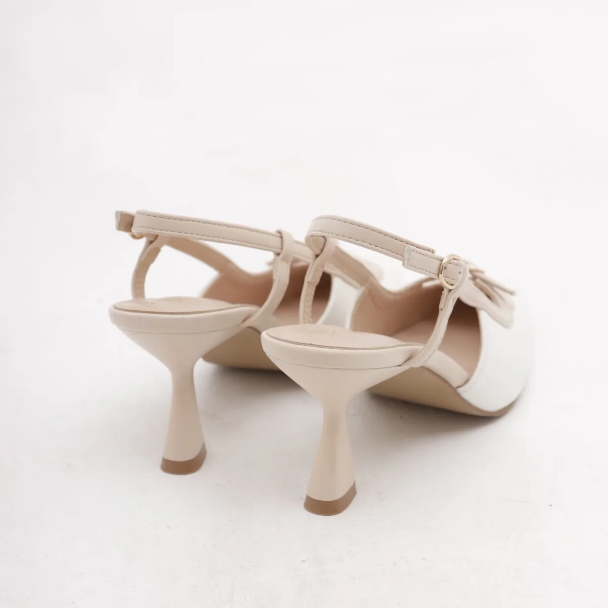 Scarpa con tacco in vernice colore Beige. Con dettaglio dorato sul tacco e cinturino alla caviglia regolabile. Disponibile anche in Nero.