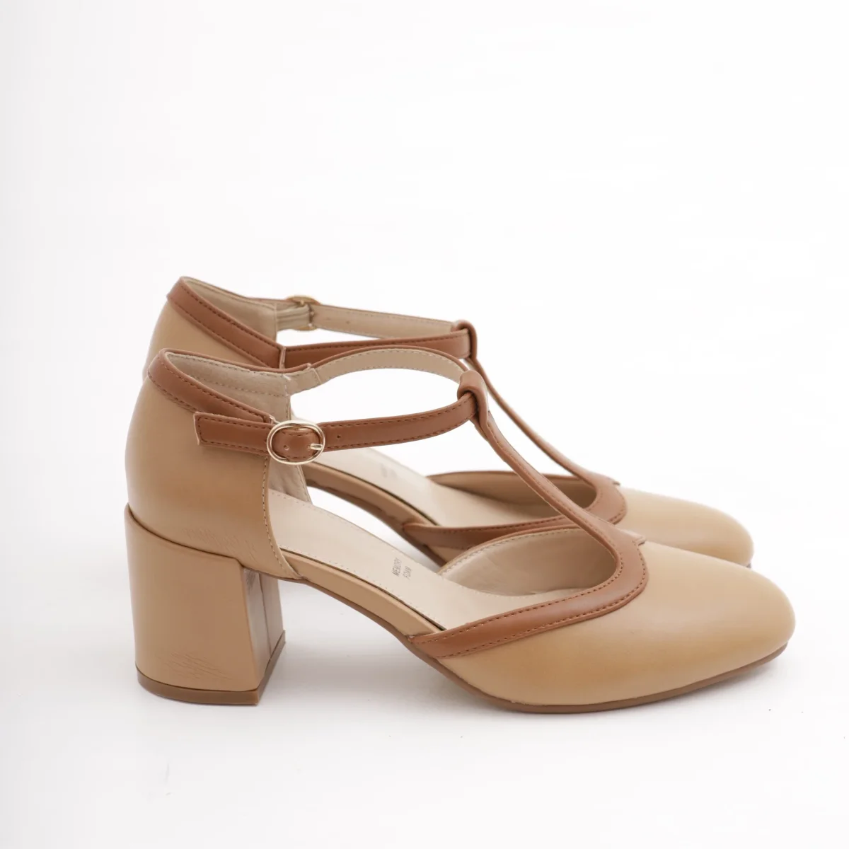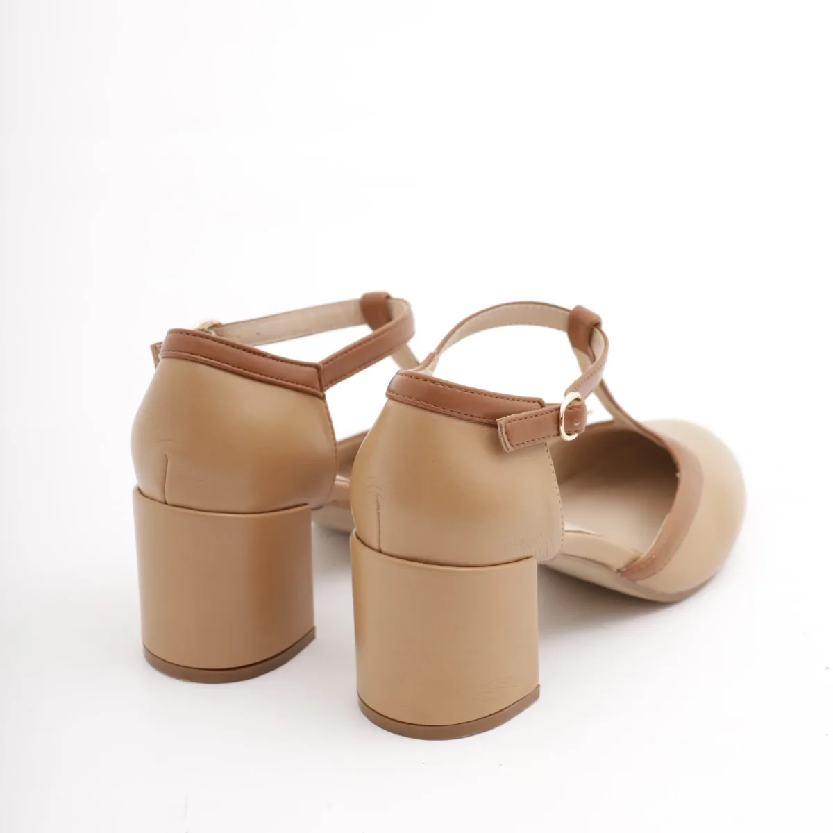 Scarpa con tacco in vernice colore Beige. Con dettaglio dorato sul tacco e cinturino alla caviglia regolabile. Disponibile anche in Nero.