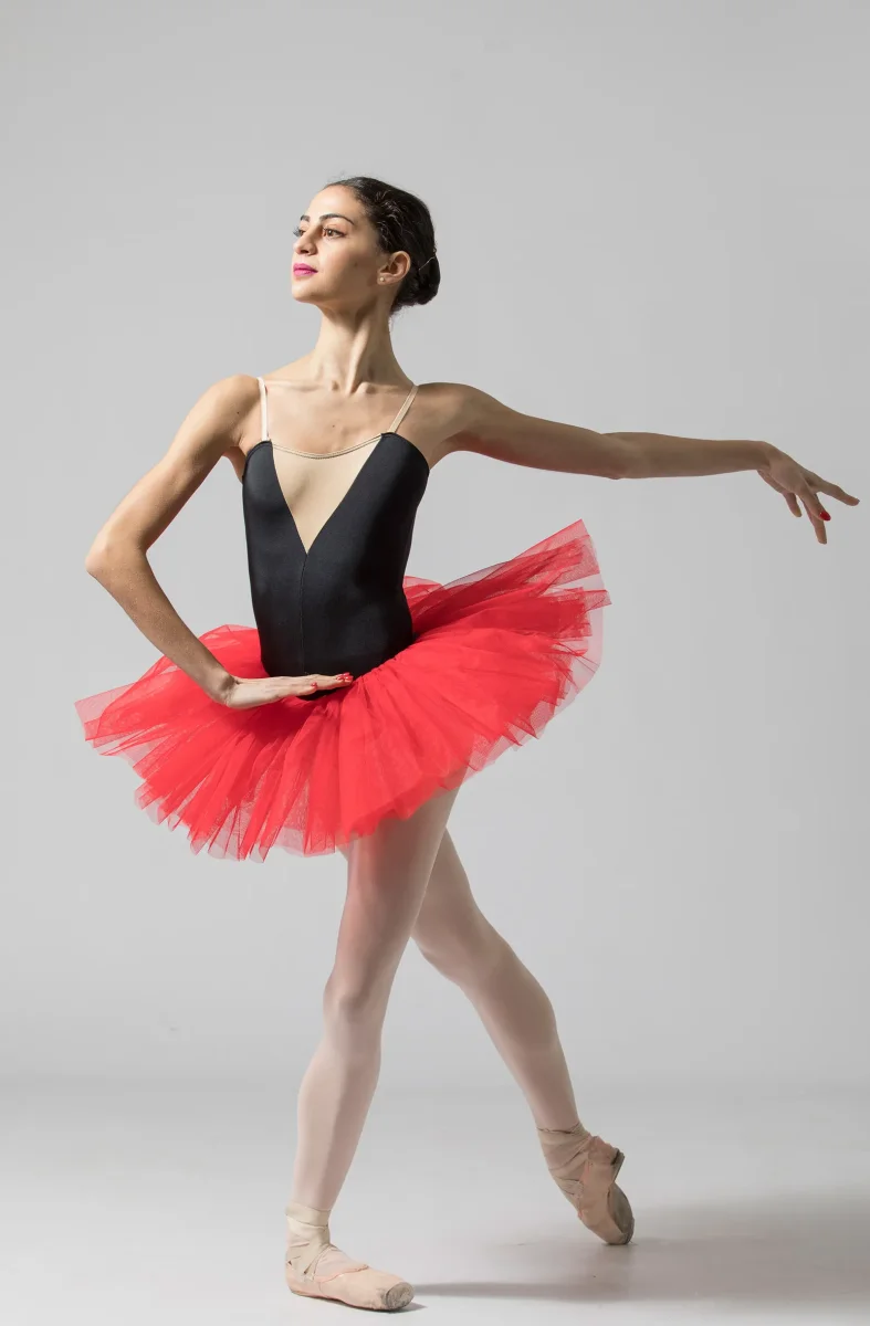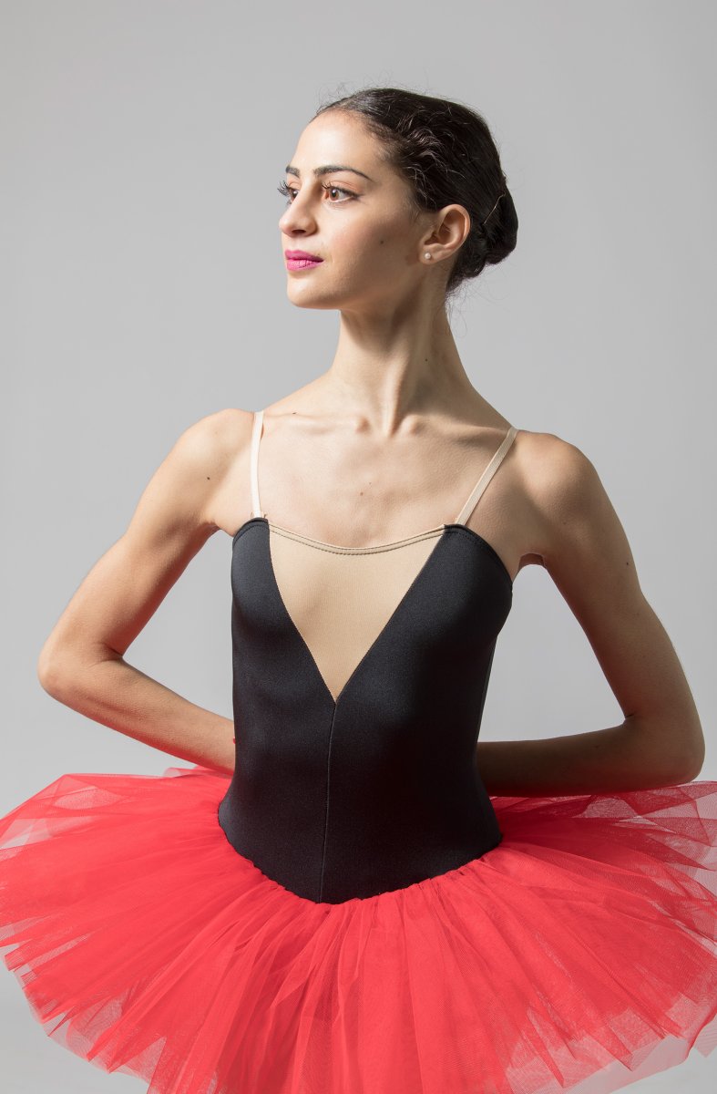 Questo articolo racchiude il suo fascino nella semplicità. Il contrasto di colori ne dona un carattere “spagnolo” che consente di utilizzare questo capo per danze come “Don Chisciotte”