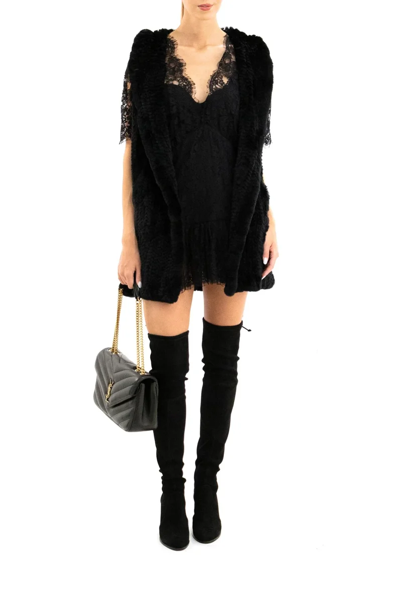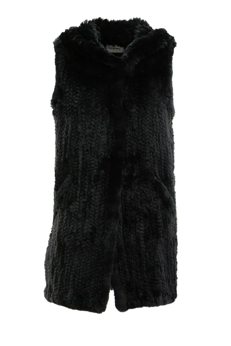 YVES SALOMON Gilet in coniglio color nero Composizione: 100% Rex.